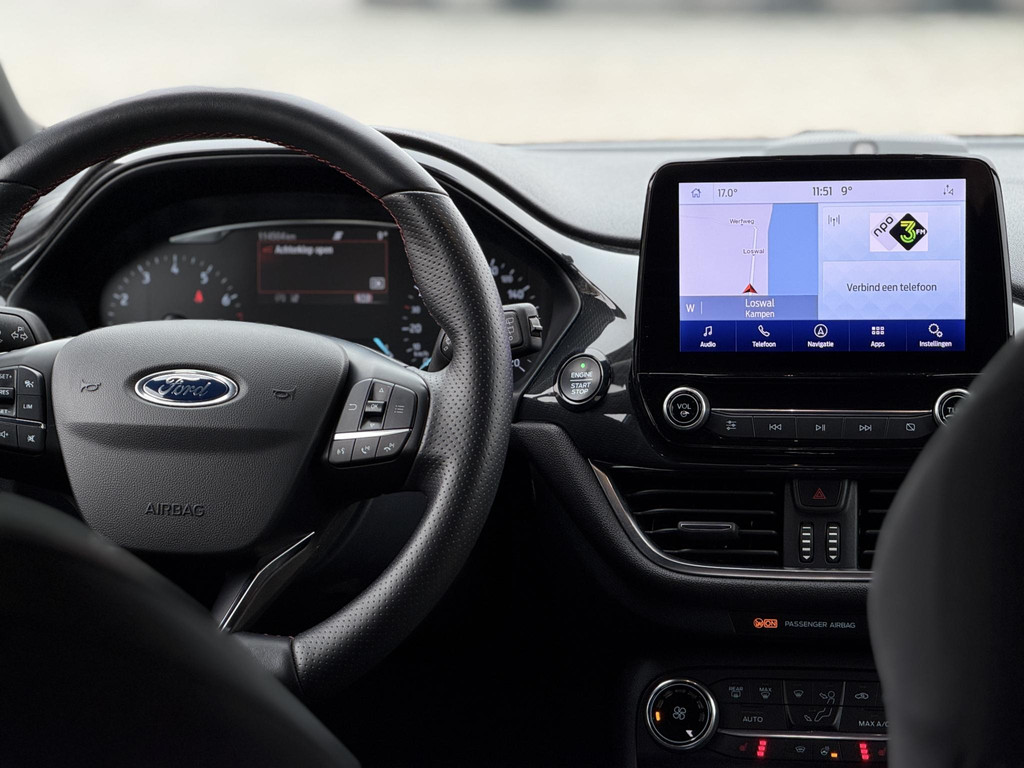 Zoals u mag verwachten van deze Ford Fiesta is hij uitgerust met een reeks aan actieve veiligheidssystemen. In het instrumentarium ziet u tijdens de rit ook de belangrijkste verkeersborden aangegeven, die de auto automatisch voor u leest. Het Lane-keeping systeem zorgt dat u mooi binnen de lijntjes blijft. Ongemerkt buiten de rijstrook komen is er niet meer bij. Vermoeidsheidsherkenning neemt tekenen van vermoeidheid waar bij de bestuurder. Het systeem voorkomt dat er daardoor ongelukken gebeuren. Bovenop deze veiligheidsfeatures heeft deze Ford bovendien hill hold functie, brake assist en bandenspanningcontrolesysteem.